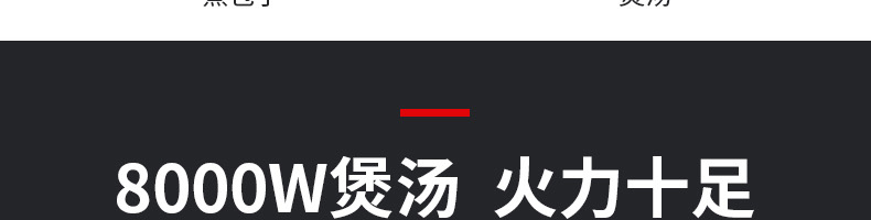 八千瓦平爐(磁控) XZ-KAM8C,八檔磁控,滿足各種烹飪。蒸煮燉煲炒,無明火模式。不同食材專屬火力、大功率、高效率。8000W煲湯火力十足具有聚能技術,大面積均速加熱,輕松制作美食。
