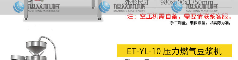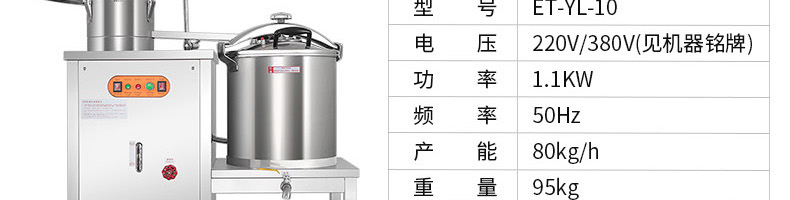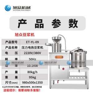 ET-YL-09壓力電熱豆?jié){機,多功能商用豆?jié){機,細、香、濃。我們珍惜每一顆大豆,讓每顆大豆進發(fā)營養(yǎng)價值。旭眾豆?jié){機做您的招牌豆?jié){打磨細膩、口感香濃、回味無窮。