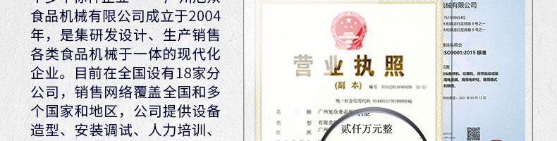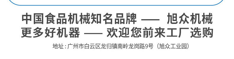 廣州旭眾食品機械有限公司是一家集科研開發(fā),生產(chǎn)設計,營銷服務為一體的現(xiàn)代化生產(chǎn)企業(yè)?,F(xiàn)代化生產(chǎn)車間,精湛制造技術,所產(chǎn)機械歷經(jīng)市場重重考驗,不斷贏得海內外客戶的贊譽。