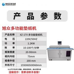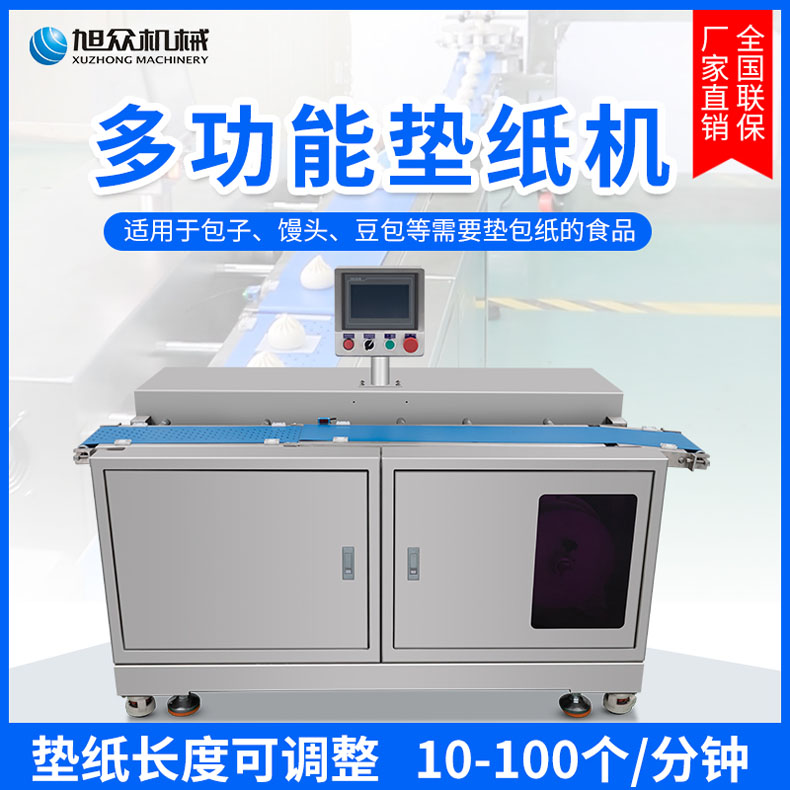 XZ-170多功能墊紙機(jī),適用于大規(guī)模生產(chǎn)多功能墊紙機(jī)適用于包子、饅頭、豆包等需要墊包紙的食。伺服控制、墊紙長度可調(diào)整。高效墊紙告別人工旭眾牌ⅩZ-170多功能墊紙機(jī)適用于規(guī)模生產(chǎn)的食品企業(yè)制作包子機(jī)、饅頭等食品的自動墊包紙?jiān)O(shè)備。