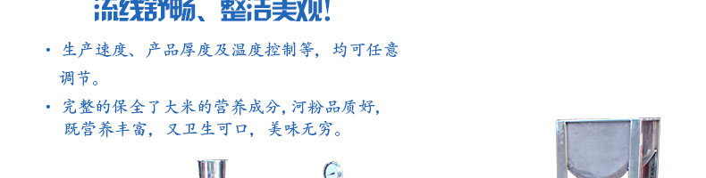 SZ-HF-500高效節(jié)能河粉機(jī),生產(chǎn)速度、產(chǎn)品厚度及溫度控制等,均可任意調(diào)節(jié)