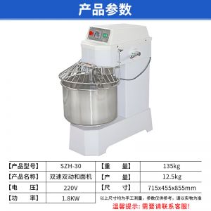 SZH-30型雙速雙動和面機(jī),本機(jī)適合攪拌各種面包、包子、饅頭、湯圓、披薩餅面團(tuán),專業(yè)設(shè)計避免面團(tuán)過分升溫并確保面團(tuán)含氧量。過載、缺相保護(hù)裝置,防護(hù)罩安全連動裝置。