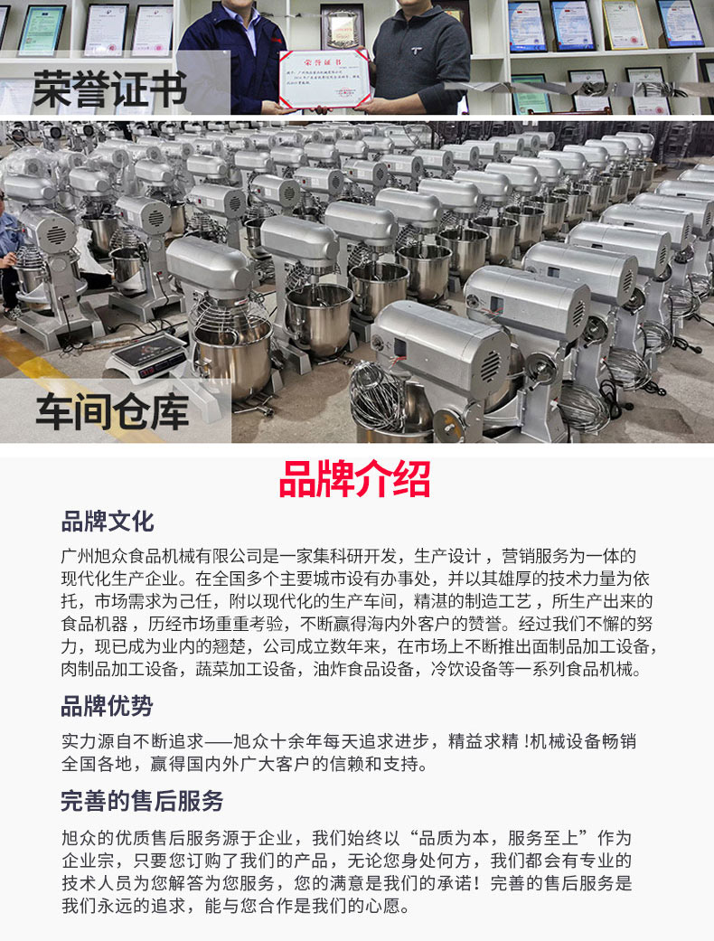 廣州旭眾食品機(jī)械有限公司是一家集科研開發(fā),生產(chǎn)設(shè)計,營銷服務(wù)為一體的現(xiàn)代化生產(chǎn)企業(yè)。現(xiàn)代化生產(chǎn)車間,精湛制造技術(shù),所產(chǎn)機(jī)械歷經(jīng)市場重重考驗,不斷贏得海內(nèi)外客戶的贊譽(yù)。