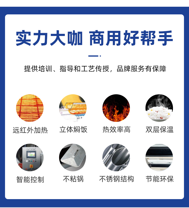 米飯生產(chǎn)線,主要結(jié)構(gòu):不銹鋼箱體,密閉不銹鋼飯盤,自動加熱循環(huán)系統(tǒng)。適用對象:大型米飯加工中心、快餐公司、大型配餐中心企事業(yè)單位、學(xué)校食堂、釀造企業(yè)等。實力大咖商用好幫手。提供培訓(xùn)、指導(dǎo)和工藝傳授,品牌服務(wù)有保障。
