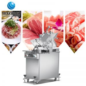 SA-350H 全自動落地式切片機,適合切無骨肉類和其他類似榨菜帶有彈性的食物,把原材料肉切成肉片,并可自動成卷狀??汕信H馄?、羊肉片等