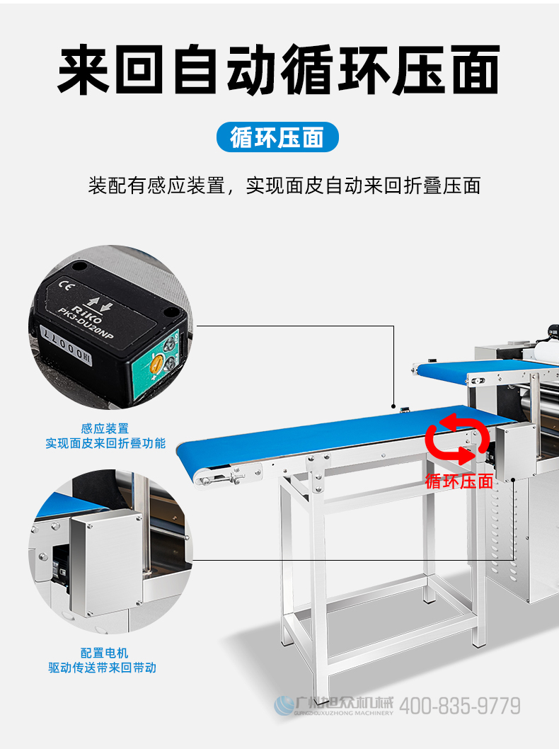 XZ-ZDYMJ370型自動(dòng)折疊壓面機(jī),整機(jī)不銹鋼機(jī)身打造,真材實(shí)料,選用不銹鋼材質(zhì),打造經(jīng)久耐用、防腐蝕。匠心細(xì)節(jié),彰顯品質(zhì)貼心設(shè)計(jì)。一鍵設(shè)定壓面次數(shù),智能定時(shí),只需設(shè)定好壓面次數(shù),就能全自動(dòng)壓面出面。