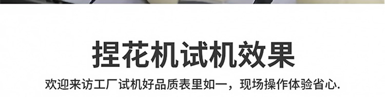 XZ-7200捏花機(jī),一臺(tái)捏花機(jī)輕松解決:手工和面包餡/人工效率低,用人成本高等一系列問(wèn)題一臺(tái)機(jī)器=10個(gè)人手工,24折捏花·外形美觀(guān)仿手工多道壓面卷面皮,卷面式包餡成型,制品表面光滑。