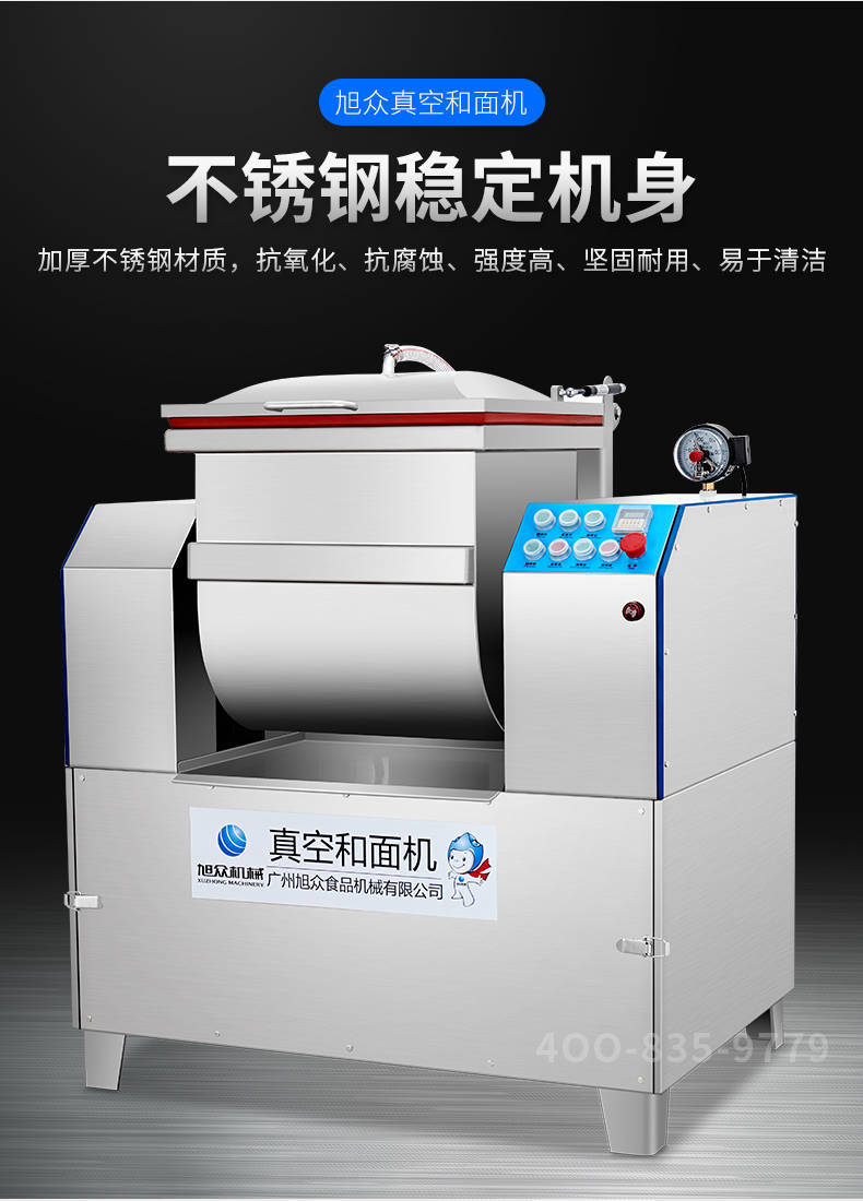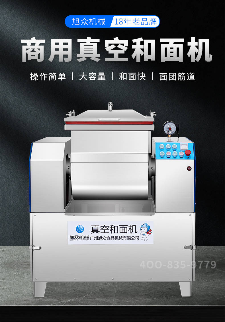 XZZK-25真空和面機,商用真空和面機,操作簡單、大容量、和面快、面團筋道。在真空狀態(tài)下模擬手工和面的原理,和面過程在真空負壓下拌和,使面粉中的蛋白質(zhì)在短時間內(nèi)、充分的吸收水分,使面筋網(wǎng)絡(luò)快速形成。