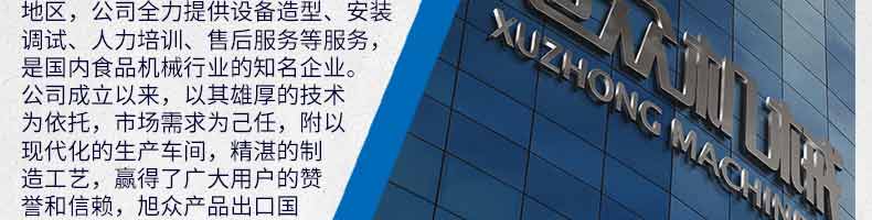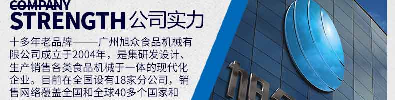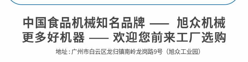 廣州旭眾食品機(jī)械有限公司是一家集科研開發(fā),生產(chǎn)設(shè)計,營銷服務(wù)為一體的現(xiàn)代化生產(chǎn)企業(yè)?,F(xiàn)代化生產(chǎn)車間,精湛制造技術(shù),所產(chǎn)機(jī)械歷經(jīng)市場重重考驗(yàn),不斷贏得海內(nèi)外客戶的贊譽(yù)。