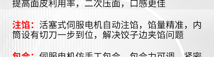 JGB-10型一體式餃子機,制皮成型一體餃子機,科技化生產(chǎn)/人性化設(shè)計。餃型可蒸、可炸、可煮,可適應(yīng)不同場合的客戶需求。功能、智能一體,以自動化科技與過硬質(zhì)量貼心服務(wù)。