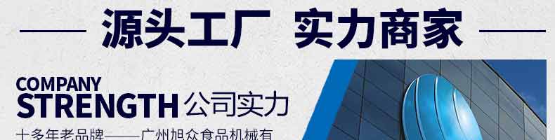 廣州旭眾食品機械有限公司是一家集科研開發(fā),生產(chǎn)設(shè)計,營銷服務(wù)為一體的現(xiàn)代化生產(chǎn)企業(yè)?,F(xiàn)代化生產(chǎn)車間,精湛制造技術(shù),所產(chǎn)機械歷經(jīng)市場重重考驗,不斷贏得海內(nèi)外客戶的贊譽。